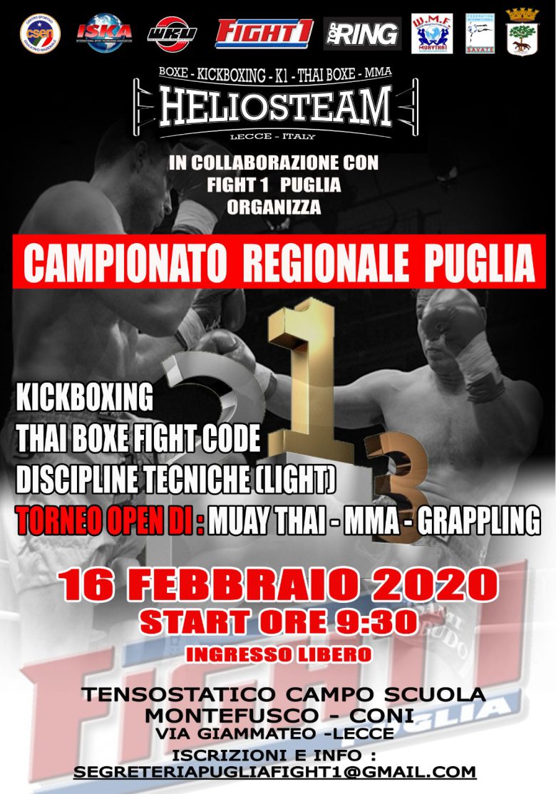 Domenica 16 Febbraio 2020 Heliosteam asd in collaborazione con il comitato regionale Puglia Fight1 organizzerà la prima fase del campionato regionale Puglia.La gara si svolgerà a Lecce presso la tensostruttura …