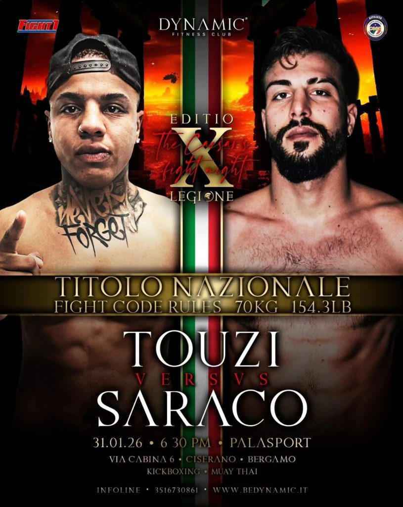 Mi riferisco ai match tra Mirko Meneghin (TKFC Milano) vs Nabil Tassa (Seconds Out Parma), valido per il titolo – 60 kg di Muay Thai, ed il match tra Oussim Touzi (Dynamic FC) vs Luigi Saraco (Il Dojo Team), valido per il titolo – 70 kg FCR.